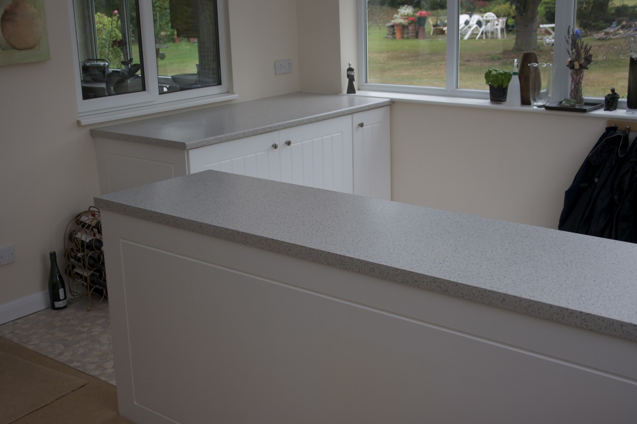 Kitchen units can be made to any size or shape. This is a modern utility room with plenty of space for a run of doors and cupboards, the large paneled back allows the unit to back onto a lounge and be viewed from all sides.